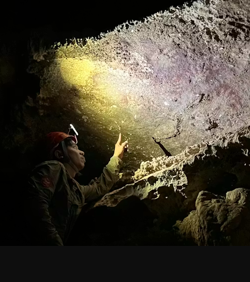 By analysing very small amounts of uranium in the mineral layers, we could work out when those layers formed. Because the minerals formed on top of the paintings, they tell us the youngest possible age of the art underneath.