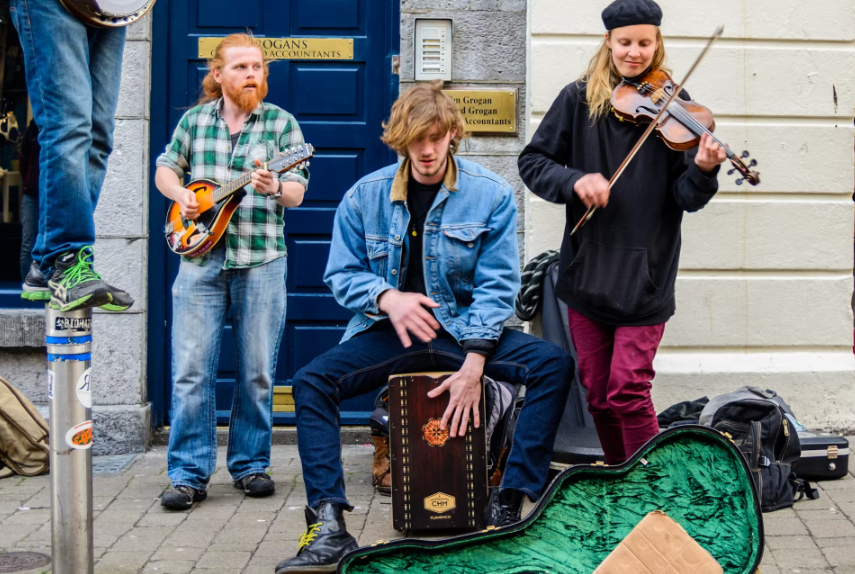 Credit: Musicians busking in Galway. Jon Chica/Shutterstock