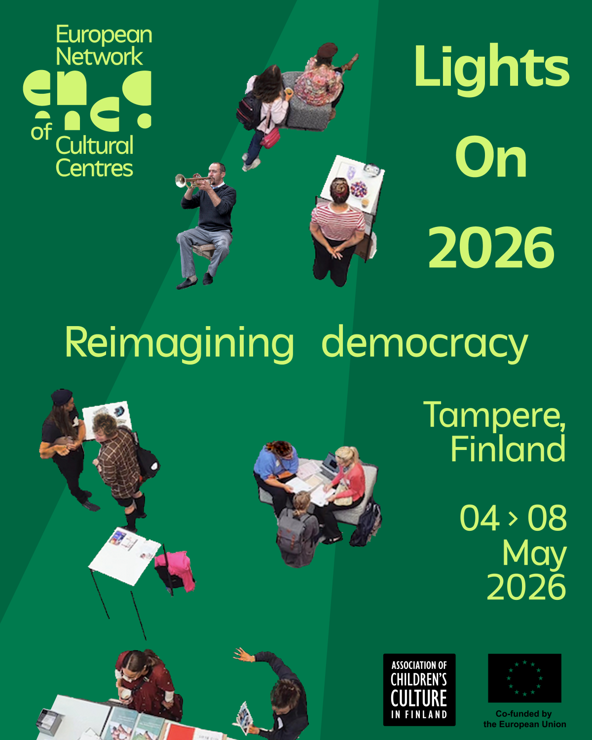 European Network of Cultural Centres (ENCC), Lights On is a long-running capacity-building programme supporting young professionals working in socio-cultural organisations. Since 2008, it has offered staff exchanges, training activities, and mentoring aimed at strengthening community-oriented cultural work across Europe. The 2026 edition focuses on democratic engagement, community building, and the role of arts and creativity in fostering inclusive civic environments. The programme is supported by Creative Europe.