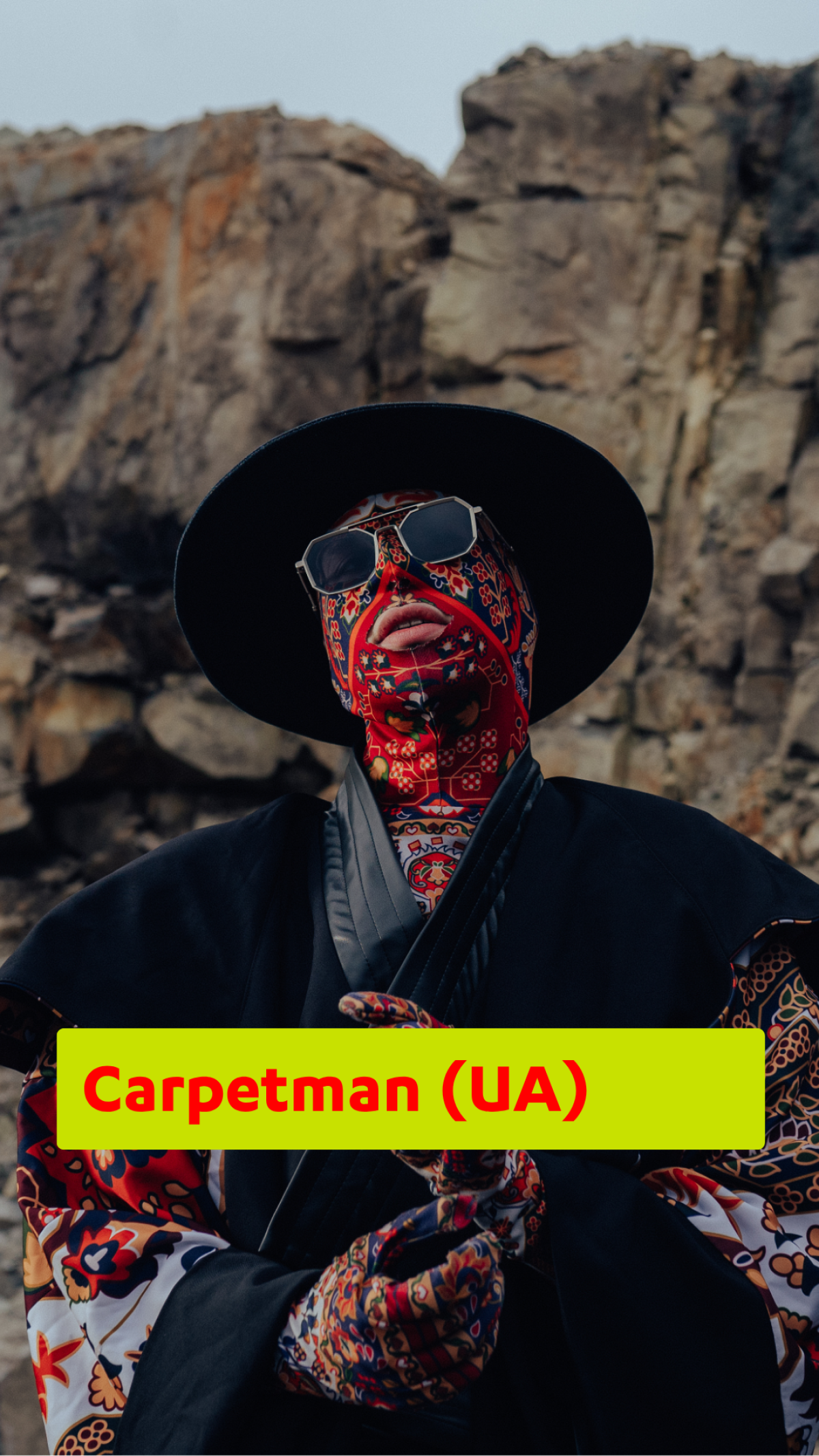 Carpetman, Ukraine - Carpetman is a mysterious young singer, hidden behind the mask of a carpet. Inspired by artists such as Kaleo, Hippie Sabotage, Kygo, Elderbrook and Jeremy Soul, the Carpetman project was initiated in the middle of 2023.