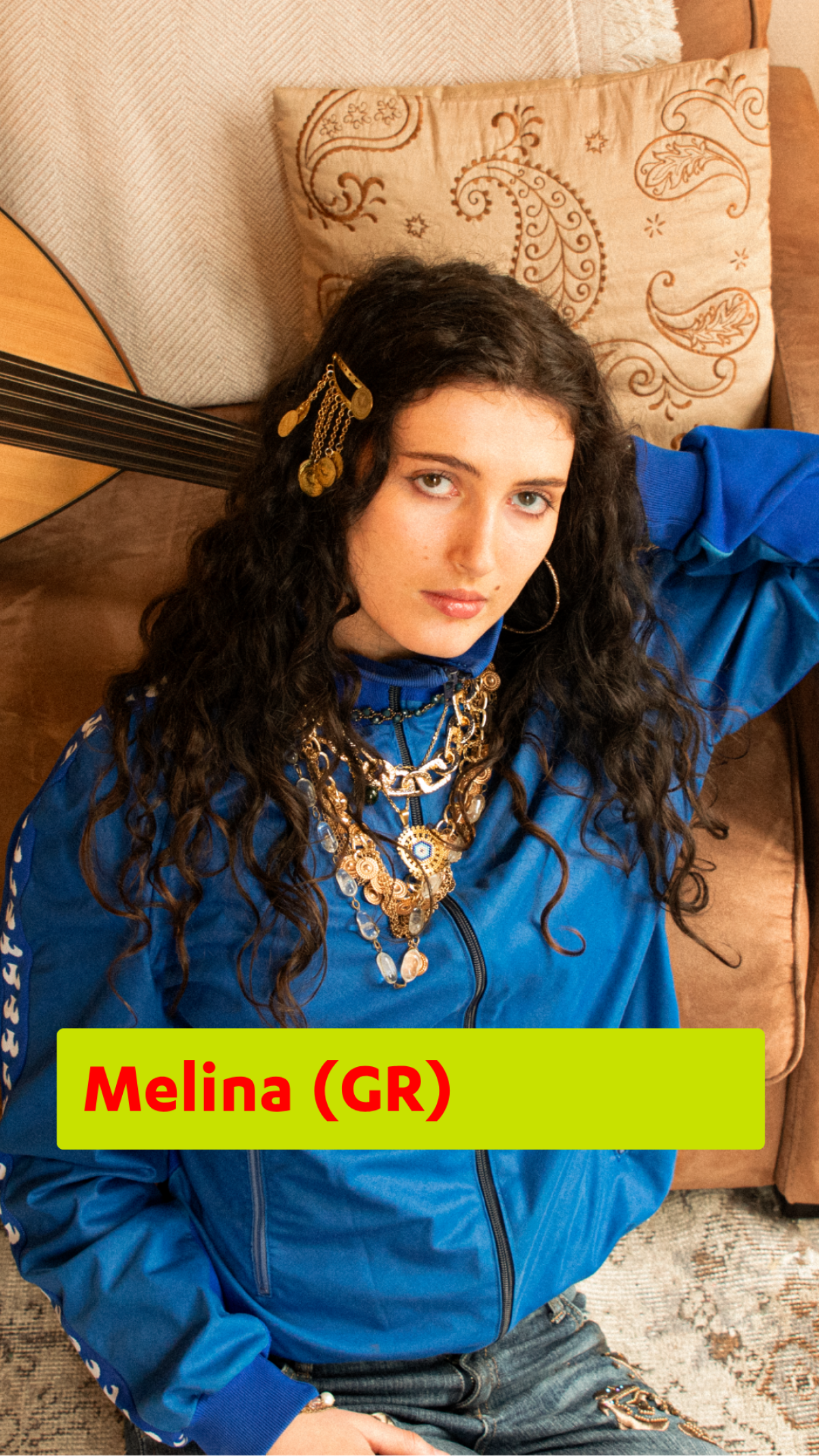 Melina, Greece - Inspired by her Greek origins, Melina Vlachos writes and composes melodies, which she sings while playing the oud and dancing, accompanied by double bass and oriental percussion.