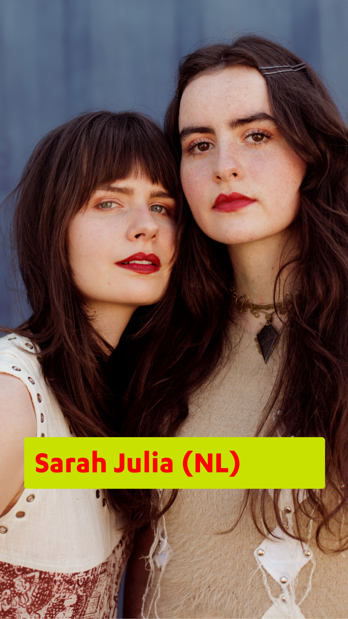 Sarah Julia, Netherlands - Bound by sisterhood and defined by piercing vulnerability, Sarah Julia craft harmony-laden indie folk that transforms love, loss, and longing into something quietly luminous.