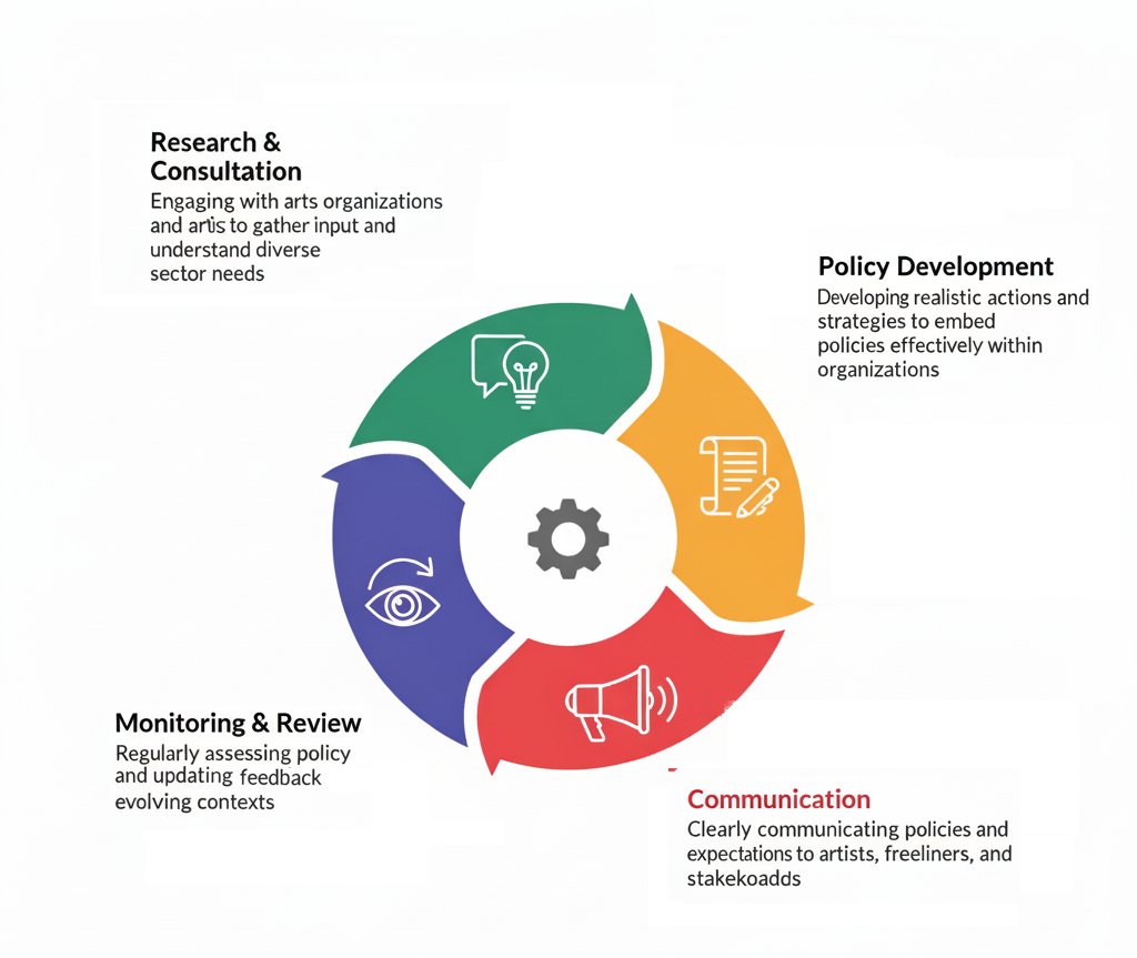 Acknowledging the systemic challenges that artists face, such as low pay, unstable incomes and precarious working conditions, the toolkit's main objective is to help organisations proactively develop and implement their own specialised policies.