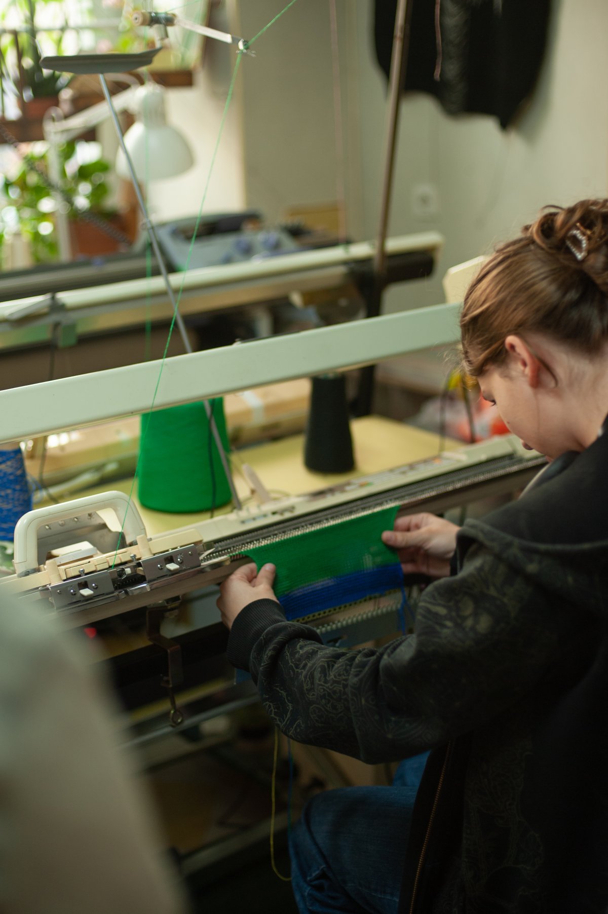 1. Veronika Persché produces textiles for local and international customers in her knitting workshop in Vienna's 16th district. She has extensive expertise in design and creation as well as in the technical field and has mastered myriad techniques in machine knitting.