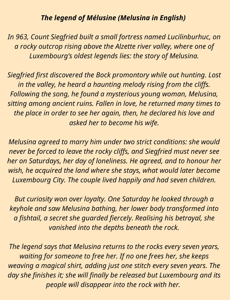 And it all began with Mélusine, the beautiful lady sitting on the ruins of a castle more than a millennium ago (following legend of Melusina adapted from here).